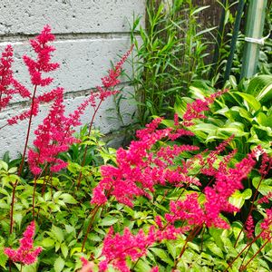 庭の隅でひっそり咲いてるアスチルべ😊 もっさりピンクが優しい雰囲気を出してくれています♪