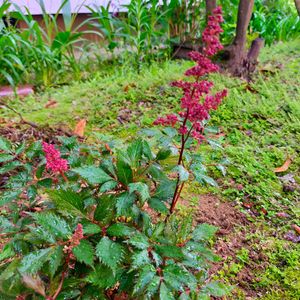 アスチルベさん 綺麗に咲きだしました! 2枚目 また何かの芽発見♫ 今度こそネジバナな気がする😁