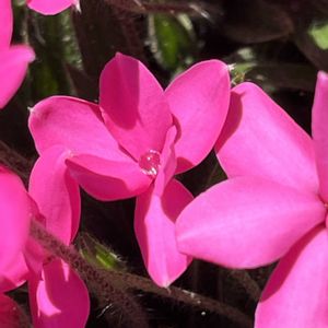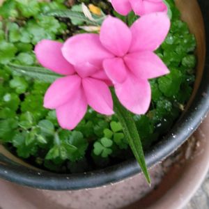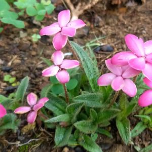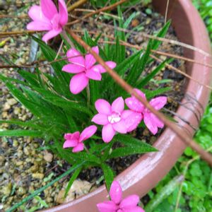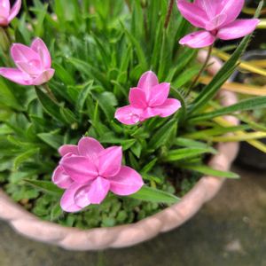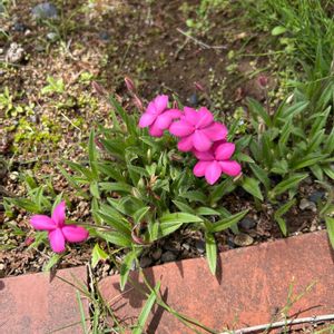 アッツザクラ 庭の土の中からムクムクと芽が出てきてピンク色の花が咲き出しました。🎀💕💓💗 可愛い ((o(。・ω・。)o))