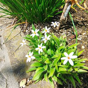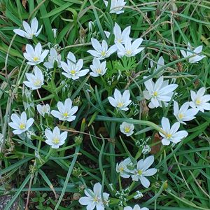 オオアマナ ツルニチニチソウ ミヤコワスレ アッツザクラ が咲いています。