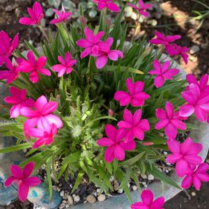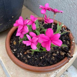 魔女の宅急便の鉢も陽に焼けて色がボケてきました。 可愛らしいピンクの芝桜?お名前忘れてしまったので、分かる方宜しくお願いします。