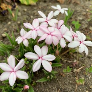 アッツザクラ(アツザクラ) 朝の散歩🚶で見かけました。 キンバイザサ科ロードヒポキシス属、南アフリカ原産の半耐寒性球根植物でアッツ島とは関係ありません。 📷 2020.5.13