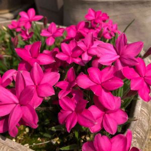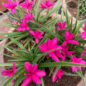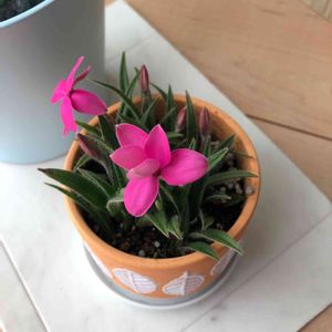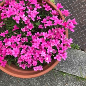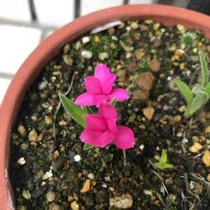 アッツザクラ2年目。 冬に、すっかり忘れてなにも出てない鉢を捨てそうになりましたが、思い出して置いておいたら、芽が出てこんなにかわいい花がたくさん咲きました❤️❤️ 白いお花もあったような気がするけど、みんなピンクになっちゃった‼️ でもかわいい〜😍😍😍