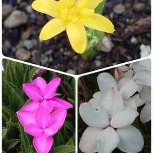 白・赤が咲いて1ヶ月位 待っていた黄色が咲きました🌸 同じ花なのに花びらの形が全然違うネ😊