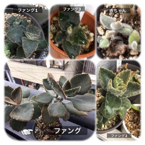 おはようございます😃 カランコエ達 増えて来ました、記録用です〜❗️🥰 カランコエ属② ⭐️ファング(177) Kalanchoe behalesis cv "Fang"❗️ お気に入りちゃん💕です〜❗️ 子株 もう一人前、雰囲気出てます❗️🥰 ⭐️トナカイの舞(187) Kalanchoe kewensis❗️ ダイソー多肉ちゃん これから紅葉して来る❗️🥰 ⭐️冬もみじ(296) Kalanchoe geanbiflora "Fuyumomiji"❗️ 綺麗な緑色 こちらもこれから紅葉🍁して来る❗️🥰 ⭐️子宝草(183) Kalanchoe creanta x daigremontiana❗️ "子宝弁慶"と"胡蝶の舞"の交配種❗️ 元気に子株を蒔いてます〜❗️😅 ⭐️不死鳥錦(270) Kalanchoe daigremontiana cv variegata❗️ 何処から来たか❓知らぬ間に生えてた子❗️😅 子株がほんのりピンク色 花のように綺麗❗️🥰 ⭐️不死鳥(278) (Kalanchoe creanta x daigremontiana) x delagoensis❗️ "子宝草"と"錦蝶"の交配種❗️ 葉の周りに子株が沢山、撒き散らしてます❗️😅 兎🐇ちゃんがまた増えたので 他のカランコエ達も紹介です〜❗️🙇♀️