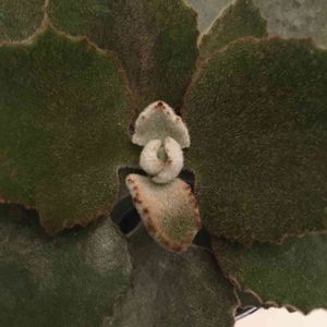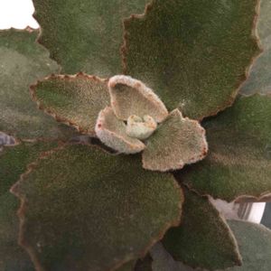 新しい綺麗な葉が出てきた!(о´∀`о) カランコエ属 ⭐️ファング Kalanchoe behalensis cv. "Fang"❗️ 地震の後の長い大雨☔️で傷んだ葉っぱ! この葉っぱは綺麗に成らない⁉︎ 早く新しい葉っぱ沢山出て来い!(^O^)