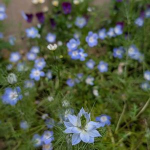 2025/5/12 タネまきっ子ニゲラ 1号! 咲きました〜💖わ~い😀 植え替えたいけどネモフィラとビオラがまだきれいで抜けないな😂