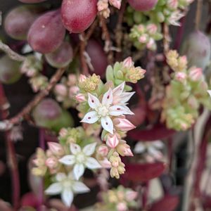 2025/5/14 去年の春、多肉を寄植えにしてからずっと放置したままでずが、セダムの花が咲きました😊ルビーネックレスがいい仕事してるな〜💖