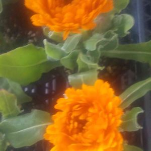 今日のお花、キンセンカ。寄せ植えした葉ぼたんと一緒に🌼🌿