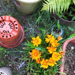 年末押し迫ってきました。 何だか気忙しいです。 が お天気も良く☀️寄植えするには 絶好のチャンス💫 やっと 念願のスキミアを使い ガザニアと合わせてみました。 花開き綺麗なOrange🍊色が 顔を出してます。✨