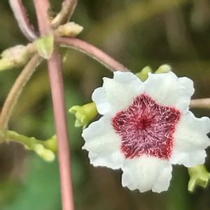今年は見かけなかったヘクソカズラが、空き家のガレージに咲いていました。 別の場所ではビッシリの実になっていました😅 花が咲いている所を見たかったなぁ💦