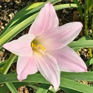 あら、ピンクのタマスダレ❗️ と思ったのですが、これはハブランサスという別の種類のようです。 タマスダレは白い花が上向きに咲き、ハブランサスはピンクの花が横向きに咲くのだそうです。