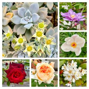 多肉にお花が🙌 薔薇 バラ シャリンバイ 芍薬 テッセン 連休明けからちょっと寒いですね~体調管理して風邪などに気を付けてください🙋