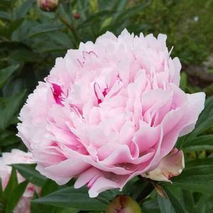 おはようございます。 庭で芍薬が開花しました。優しいピンク色です。 雨になりそうなので、写真を撮った後 切り花にしました。