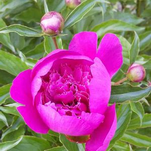 おはようございます。 実家の芍薬が開いてきました。 美しい濃いめのピンクです。