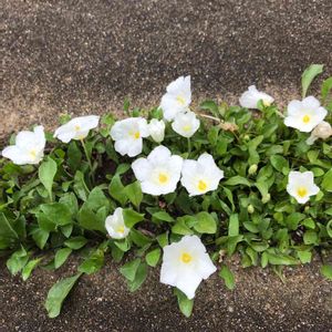 午後4時頃、田舎の駅前の石のベンチの下に咲いてました。なんの花か気になってます。教えて下さい。