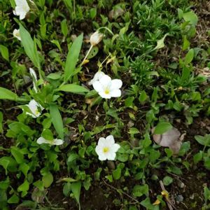 ギンパイソウ(銀盃草) 別名 サカズキソウ(杯草) ニーレンベルギア カップフラワー ナス科 ニーレンベルギア属 アルゼンチン原産 ロート状の花冠は5裂 それぞれに3条のしわが底面まで流れています 花径3cmほどの カップ状の白花が初夏に咲いて☁️とても涼しげ 葉が密に茂りグランドカバーに最適❣️ 名前の由来は 杯のような花の形からとか‼️ 群馬県渋川市赤城町 赤城自然園に咲いていました🤳
