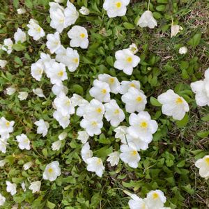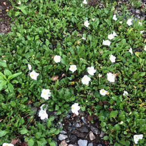 こんにちは♬ 散歩中に見つけた白いお花ପ(´‘▽︎‘`)ଓ♡⃛︎ ギンパイソウ(銀盃草) 背丈は短く、お花の形が盃に似てるところから名付けられたんだそう😍 放ったらかしで増えてくらしい グランドカバーにしたらステキでしょうネ💕💕🌱