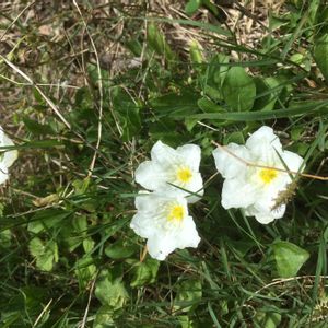 草むらにたくさん咲いていました。葉は見えず、地面から直接5cmぐらいの高さの茎の先に花をつけているているような感じでした。 どなたか名前をご存知でしょうか。