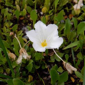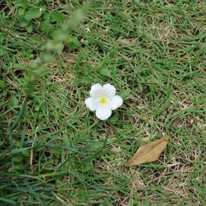 朝、ひょっこりとかわいい白い花が咲いていると、嬉しくなります。