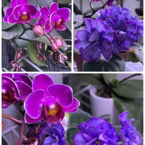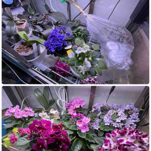 今咲いているセントポーリア😊 左上は1月27日購入したセントポーリア。 その下は昨年11月30日購入した(まだ咲いています😍)同じタイプのセントポーリア。 上の方が色が濃いのと、耳までピンクが入っています。似ているので、姉妹株かな🤔 LEDと温度が良いのか良く咲きます😄