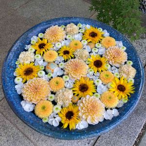 おはようございます😊 ビタミンカラーの花手水 花(?の)金曜日 元気に参りましょう🤗