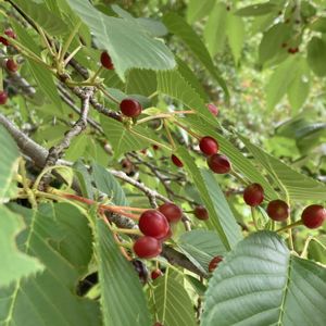 自宅近くの川沿い… 桜並木の中に1本だけさくらんぼの木があります。 実は小さいですが、美味しいです。 ヒヨちゃん(ヒヨドリ)に完食される前に、2個試食しました♪