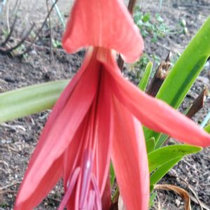 スプレケリア 和名 つばめ水仙 鮮やかなレッド🟥 まだ一花だけ‥。 もうじきツバメが飛び交いますね〜(*´∇`*)