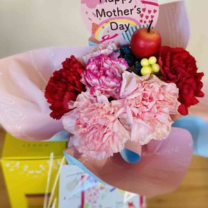 1日遅れで届いた娘からの スタンディングブーケ💐 カステラ付き😆 最近は花束も立つんだね🤣 カーネーションの色が とっても素敵꒰ღ˘◡˘ற꒱ 遠くにいてなかなか会えないけど 母の日を忘れないでいてくれてありがとう