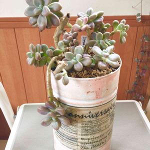 * だるま秋麗さん リメ缶作って植え替えました コストコの巨大なキャンベルスープ、クラムチャウダー缶! (コストコのクラムチャウダー美味しすぎません?) * このダルさん、多肉始めて5年目の初期から居るのでこんなに古木風になって、あちこち折れたり傷ついたりですが愛着しとしおなんです🥰 むっちりちょこんと可愛いだるま秋麗と違ってワイルドでしょ? * 多肉愛でている人っていろいろあっても、多肉の生命力に救われ癒されている人が多いと思う・・・私がそうです。古木も大切に可愛いがろう ♡(´ー`*)ウンウン * 台風も避難訓練で終わってくれました☺️ ホッ 良かった