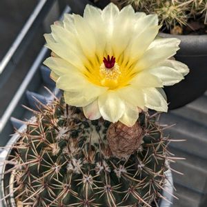 1. 2. テロカクタス 表記はなかったけど、テロカクタスであることに間違いないはず。トゲの色と形が気に入ってお迎えしたけど、花も艶やか。トゲに保護されすぎて全開できてない… この後もうちょっと開いたけど写真を撮りそこねた😅 3. ノトカクタス やっぱり2輪一緒に咲いた😊去年よりも花が大きくなったような気がする。先日投稿した小町がまた開花していたので交配してみた。種できるのかな? 4. ギムノカリキウム 開いて閉じてを繰り返していくうちにオレンジ色からピンク色へとだんだん変化していくのだとはじめて認識。 5. エキノプシス またまた夜好きさん。今年2輪目。今回は朝をまたずに全開。結婚式の引き出物としていただいた時には親指くらいの大きさだった。だいぶ立派になったなぁ。