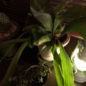 真夜中のグリーンたち ビカクシダ、 初めは苔玉仕様でしたが ぐんぐん大きくなって 今は鉢植えです 株分けにチャレンジしてみようかなぁ できるかなぁ 怖いな 怖いなぁ