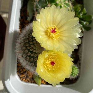 お正月特売3個250円で買ったサボテン 買った時のまま植え替えしてなくて、気になってたけど、やっと昨日植え替え終了 土が固くなっててあまり根っこが育ってなかった(>_<。)💦 植え替えでうまく伸びてくれると嬉しいんだけど 左⬅ノトカクタス、右➡ノトカクタスの美青丸 左⬅の子はノトカクタスの誰なのかな?