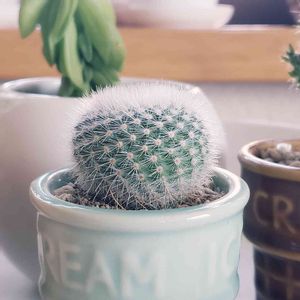 暑くなってきたので 多肉狩りを我慢してるんだけど その押えた気持ちを サボテン狩りに向けてしまった!😅😅😅 ダイソーで!新天地とノトカクタス って書いてありました! 白小町でしょうかね??? 鉢は小さくて使いにくかったコーヒーカップに穴を開けました♪