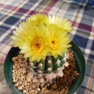 ノトカクタス 金小町。 去年の秋に貰った子。 今年は環境が変わったから咲かないかと思ったら、こんなに咲いてくれました😊💕 蕾があと二つ隠れてる。 欲が出て満開が見たかった〜😆 さすがに同時には難しいのね…