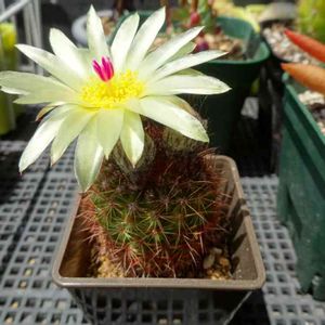 去年の夏ダイソーで購入した ノトカクタス(バンブリュ?)🌵 花が咲いて姿がパイナップル みたい🍍🤭