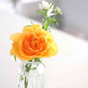 オレンジ色の小さなバラだけど テーブルの上で 存在感たっぷり✨
