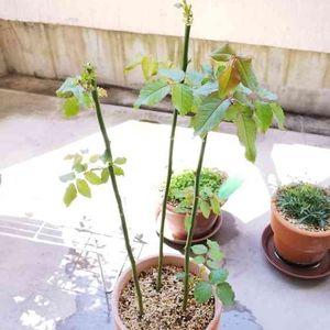 花瓶にいけていたバラから根っこがはえてきたので、土に植えたら葉っぱが増えてきました🎵 今日は3つに植え替えします💪 初心者なので、何でもアドバイスお待ちしてます!!