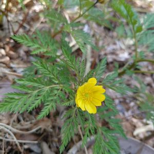 💛金鳳花 ツヤのある花びら✨ 切れ込みのある葉 たぶん キンポウゲかと💛😊💦