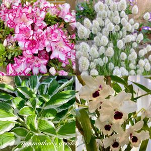 ご覧頂きありがとうございます😄 実家のお花です。 ↖️アザレア 鮮やかで綺麗❤️ ↙️キボウシ 斑入りの綺麗な葉がモリモリ ↗️ラグラス ドライにできるそうで可愛い ↘️デンドロビューム 毎年咲いてます 今日は、冷たい雨です☂️ 寒暖差にご注意してお過ごし下さいね🍀