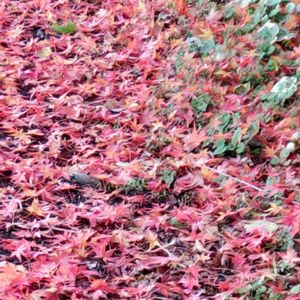 庭の紅葉②🍁⠜ みどり緑してい お庭のモミジも(11/15投稿) 色づいてきましたよ➰🍂🍁 ①ここの一部の葉っぱだけ 真っ赤❤️ ②シダレモミジ ちょっと葉焼けしちゃってるけど この色の移ろいの瞬間も好きෆ.*・゚ 夏は 清涼感あります💚 ③こぼれタネのモミジが お庭を 彩ってくれてます❤️🧡💛💚