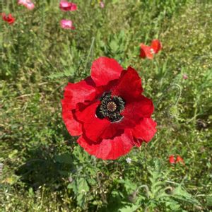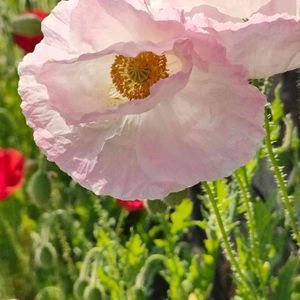 ケシ ケシ科 ケシ属 花言葉 眠り、慰め ルピナス マメ科 ルピナス属 花言葉 あなたは私の安らぎ 赤いケシが可憐に 咲いていました。 夢の中の様です。🥰