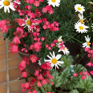 マーガレットと、ツボサンゴ(ヒューケラ)がたくさん咲いてくれています。🥰❣️❣️嬉しい。 元気をもらっています。