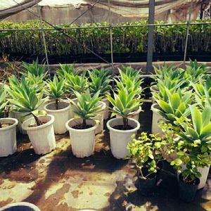 好きなアガベの一つアテナータ どれもこれも状態が良くて迷いました‥。 何とか1つ選んで連れて帰りました😁 奥に見えてるのは販売しているプルメリアのごく一部です!!