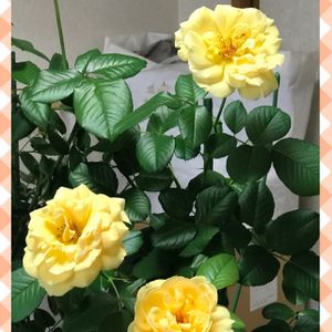 今日は久々の晴れで気持ちよかったですね。 ベランダで今も健気に咲いてくれてる黄ばらたち💖 右上 アンバークイーン 右下 ピーチアバランチェ(超おっきいバラ✨✨)左下↙️大きな大きな虹が🌈 左上↖️アンブリッジローズ