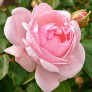 🏷木曜日は木 🏷木曜日は桃色 🏷木曜日は木に咲く花 もっとも美しいイングリッシュローズの中のひとつ。愛らしいソフトピンクの花は、かなり大きめで気品があります🌹🌿💗😃 開いていくにつれて花びらはさらにカーブを描き、わずかにドーム型になります。 デリケートなオールドローズ系の甘い香り。 「セーブ・ザ・チルドレン基金」というチャリティー団体を設立した女性、エグランタイン・ジェブ女史にちなんで名付けられました。 また、別名で皇太子の御成婚にちなんで、雅子妃殿下の名を冠しています👸✨