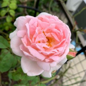 昨日のpic 薔薇 マサコ/エグランタイン二番花🌸です 香りの素晴らしいイングリッシュローズです 周りの3つの蕾に挟まれて少し窮屈そうなボタンアイ