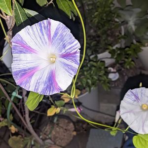 夜になっても咲いてる朝顔🌸 朝と色が変わっててびっくり😳‼️ 1枚目 夜 2枚目 朝 どっちも綺麗✨