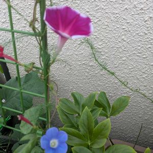 去年のこぼれ種のあさがおが、涼しくなりとても綺麗に咲いています🥰 夏の猛暑のせいで、夏のお花が秋に咲いてしまうことが最近は多いですね😱 今年買ったバタフライピーが咲き始めました このお花でバタフライピーティーを作ろうと思います🤤