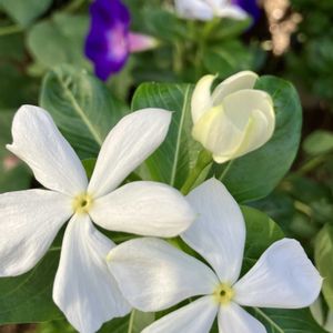 今朝にわです… ニチニチソウさんと朝顔さんが共に咲いていました😊 ニチニチソウさんの可愛らしい蕾も写ってくれましたよ